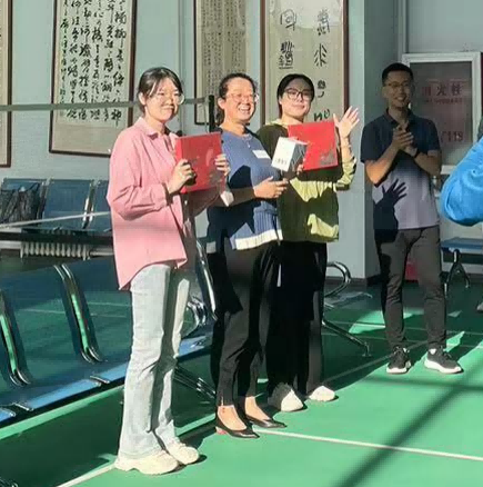 第二部分是趣味运动会,分为踢毽子、跳绳、乒乓球往返跑三个部分,30秒计时一分段,三人一组,学生与老师自由组队,小组间进行了激烈角逐,院长为获得第一名的队伍颁发奖品。