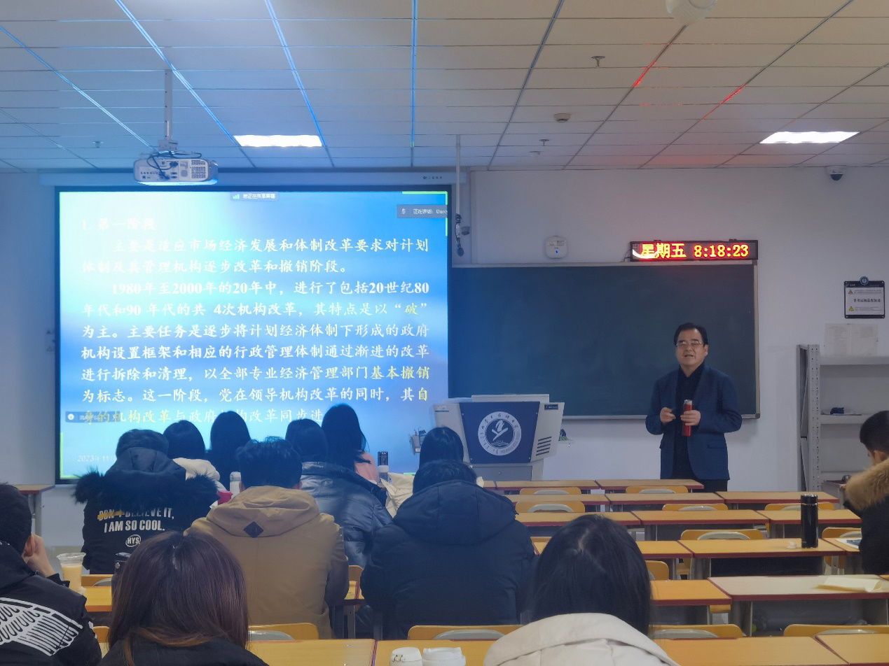 2023年11月24日上午,内蒙古大学二级教授、公共管理学博士研究生导师任维德教授,为我院开展“当代中国政府改革的历程、经验与启示”专题讲座。讲座由内蒙古医科大学卫生管理学院MPA教育中心副主任李敏主持,卫生管理学院全体教师、2023级公共管理专业硕士研究生、卫生管理学院各本科专业同学们聆听了本次讲座。