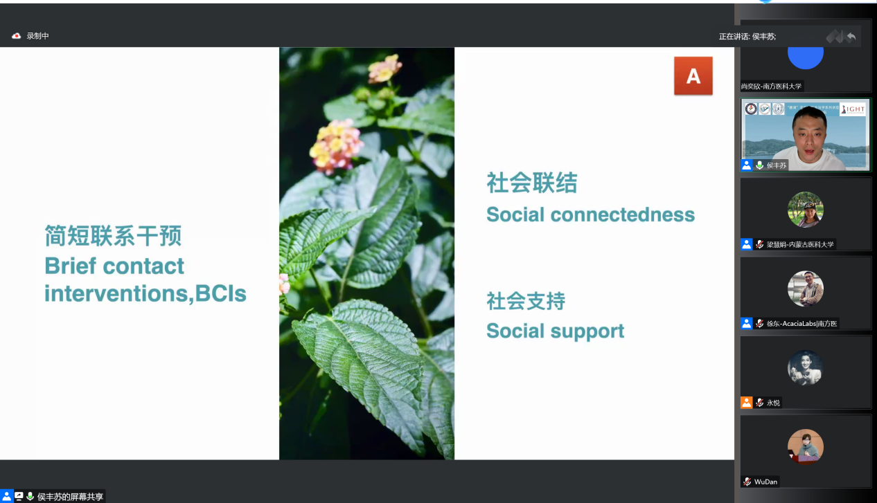 “麓湖”实施科学方法学系列讲座之“鸿雁”论坛第三期于北京时间2022年11月27日下午15:00-17:00以线上直播的方式成功举办。本期的主讲嘉宾是深圳市康宁医院、深圳市精神卫生中心副研究员侯丰苏老师,他向我们介绍了正在进行的基于实施科学的精神障碍出院患者自杀风险管理研究,并以生动有趣的方式向我们介绍了游戏化干预这一大胆设想,以及标书申请和项目开展过程中的一些注意事项。