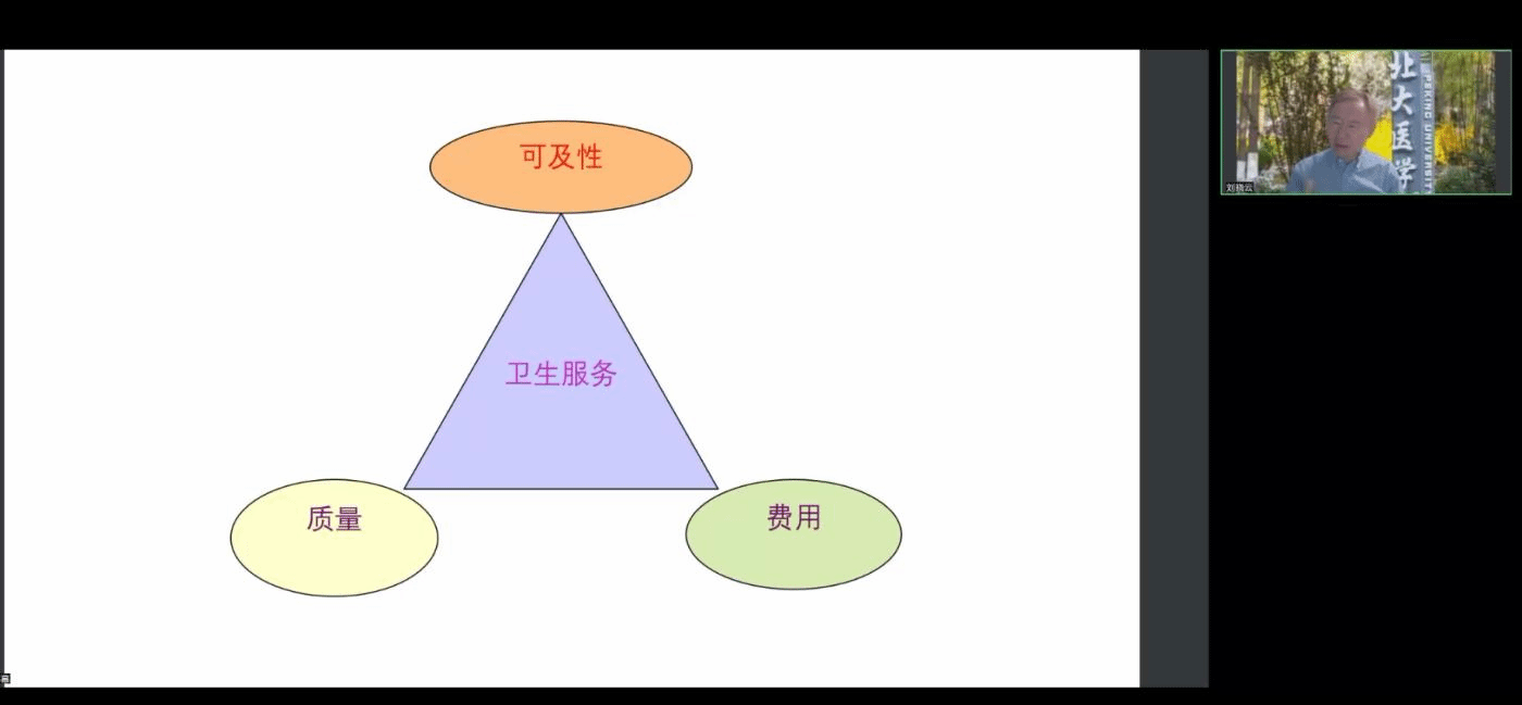 刘教授在此次讲座中首先讲解了卫生服务的“可及性”、“质量”、“费用”三者之间的相互关系;其次分析了全民健康覆盖与“看病难看病贵”之间的关系;最后详细讲解了评价和测量基层卫生服务的PHC体系质量与技术质量,并具体分析了其中的具体维度。