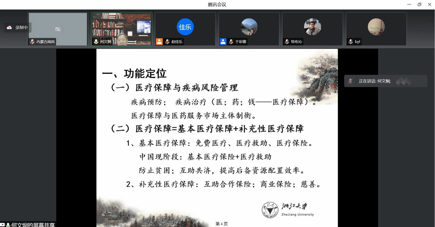 线上讲座气氛热烈,何教授耐心细致地解答了老师同学们提出的问题。通过此次讲座,我院师生以及内蒙古健康政策研究会会员对我国的医疗保障发展及改革方向有了更进一步的了解。最后,主持人对何教授的讲座内容进行总结,并感谢何教授为大家带来的精彩讲座,期待未来在学术研究领域能有更深更广的合作交流。