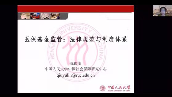 2022年4月21日晚,我院特邀中国人民大学仇雨林教授为我院全体师生以及内蒙古健康政策研究会会员开展线上讲座。仇教授开展了题为“医保基金监管:法律规范与制度体系”的讲座,卫生管理学院副院长于彩霞主持。