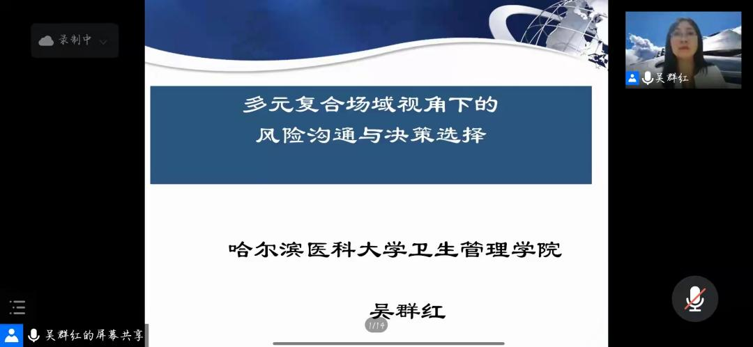 2021年11月19日晚,我院和自治区公共卫生重点实验室共同邀请吴群红教授为我院全体师生开展线上讲座。讲座题目为“多元复合场域下的卫生应急风险沟通与决策选择”,卫生管理学院副书记、副院长张楠主持。