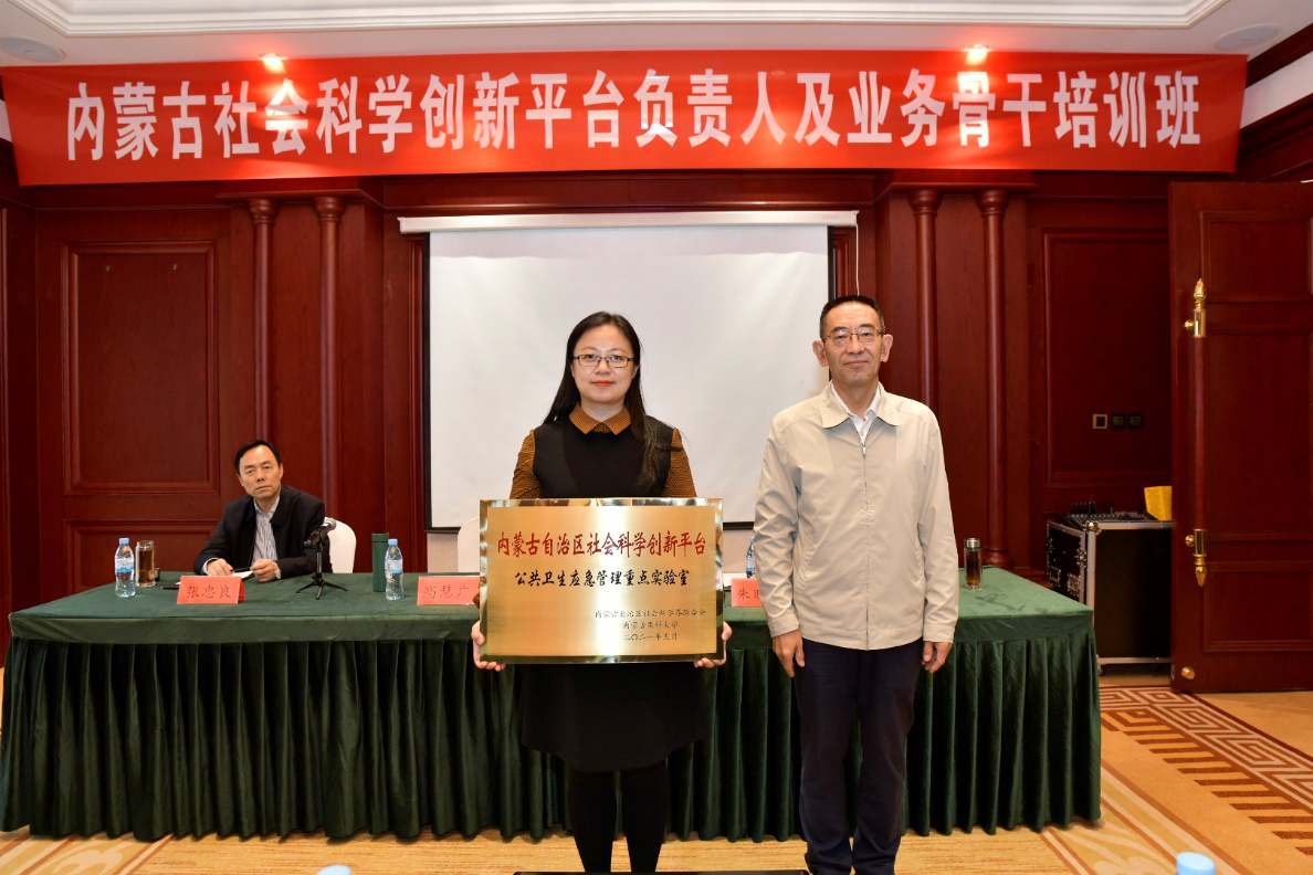 为贯彻落实习近平新时代中国特色社会主义思想和习近平总书记在哲学社会科学座谈会上重要讲话精神,促进我区社科研究资源优化整合,助力一流学科建设,推进学科交叉融合,形成社科研究协同发展新格局,全面提升我区社科研究创新能力,由内蒙古自治区社科联牵头,在我区部分高校和盟市社科联、社科类社会组织共同创建了11个内蒙古社会科学创新平台。自治区社科联于2021年5月15日在乌兰察布市举办了内蒙古社会科学创新平台的揭牌仪式。自治区社科联与内蒙古医科大学共建的内蒙古自治区公共卫生应急管理重点实验室落户我院,自治区社科联并资助10万元课题经费。