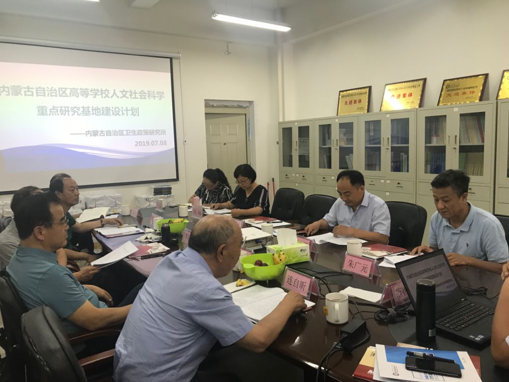 2019年7月8日上午,内蒙古自治区教育厅科学技术与教育信息化处朱广元处长和专家一行6人莅临我院,对自治区高校人文社会科学重点研究基地——内蒙古自治区卫生政策研究所(以下简称“研究所”)的建设可行性进行论证。我校科技处贾永峰处长以及我院范艳存院长、于彩霞副院长、孙静教授、张楠副教授参加了本次论证会。本次会议由贾永峰处长主持,会议首先由范艳存院长对研究所的发展现状、人才队伍建设、近年来取得的成果、预期目标和建设计划等方面进行了详细的汇报。内蒙古自治区教育厅领导和专家认真听取了汇报,对近年来研究所的发展及取得的成果给予了充分的肯定和赞赏;同时,针对研究所发展中的不足之处,提出了宝贵的建议与意见。本次会议对研究所的发展具有重要的指导意义,为研究所促进内蒙古自治区卫生事业发展提供了强有力的推动力。