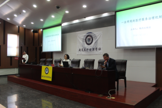 为积极响应学院“拓展专业知识,打造学术社团”的号召,起凡医疗保障学社特邀请清华大学杨燕绥教授,于2018年5月28日晚6:30在内蒙古医科大学金山校区交流中心开展了《一法两规的医疗服务治理机制》的讲座。本次讲座由卫生管理学院范艳存院长主持,出席本次讲座的老师有:于彩霞院长、孙静老师、闻岚老师、刘思佳老师、矗哈尔老师、常乌兰图雅老师、张来玮老师。我院劳动与社会保障专业、保险专业学生到场聆听。
