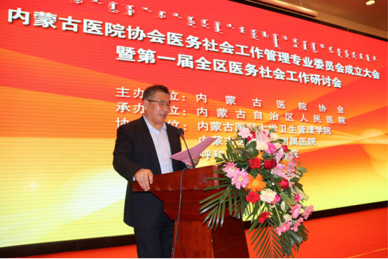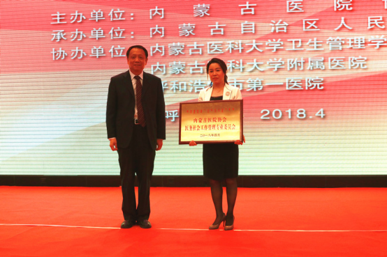成立大会由内蒙古自治区人民医院副院长蔡超主持,内蒙古自治区人民医院副院长云志中代表承办单位致开幕辞,中国医院协会副会长王杉、内蒙古医院协会会长尹赤林发表讲话。尹赤林会长为内蒙古医院协会医务社会工作管理专业委员会授牌。