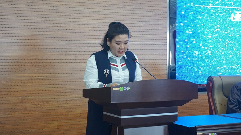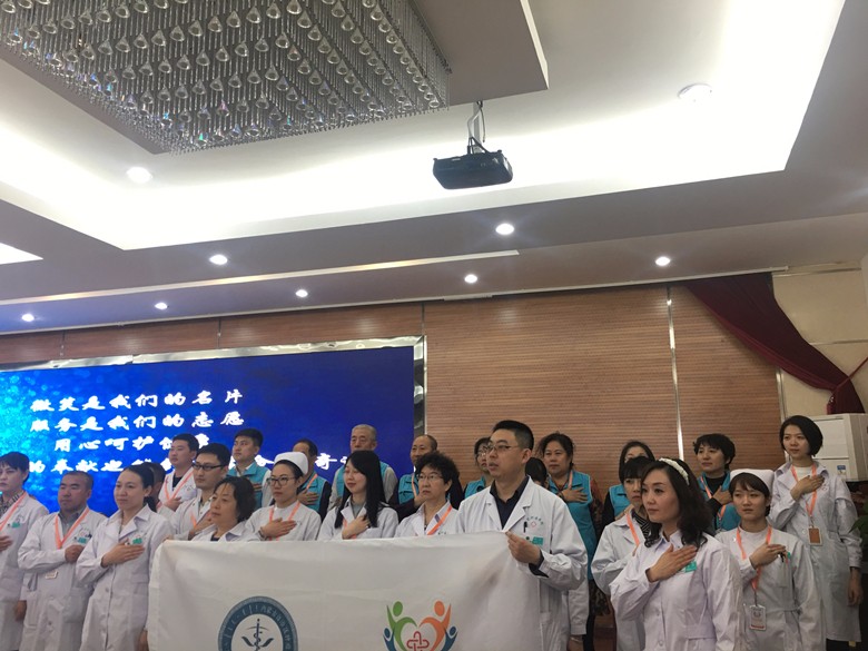工作人员宣读《内蒙古自治区肿瘤医院(内蒙古医科大学附属人民医院)关于成立医务社会工作组的通知》。