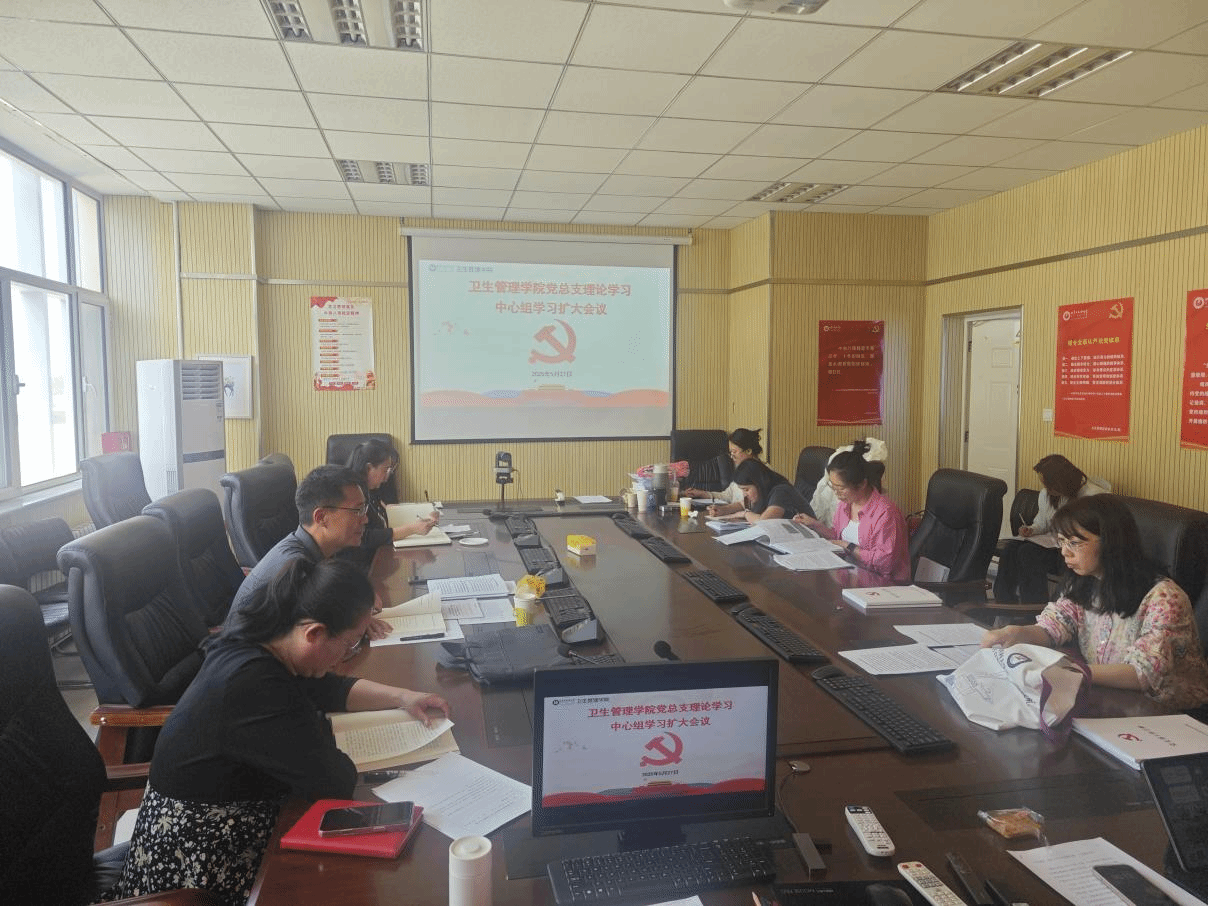 2025年5月27日,卫生管理学院党总支在G座学院会议室召开了2025年5月份中心组集体学习研讨扩大会议,党总支书记武向炜,宣传委员、副院长孙静,统战委员、副院长李敏及各党支部书记、委员、党员代表参加了会议,本次会议由武向炜书记主持。