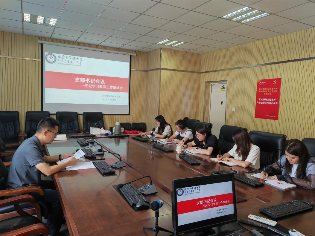为进一步强化党员身份意识、责任意识和担当意识,高质量、高标准推进党纪学习教育,2024年7月1日下午,卫生管理学院党总支在学院会议室召开了党纪学习教育推进会暨党支部书记工作例会,会议由党总支书记武向炜主持,全体党支部书记参会。