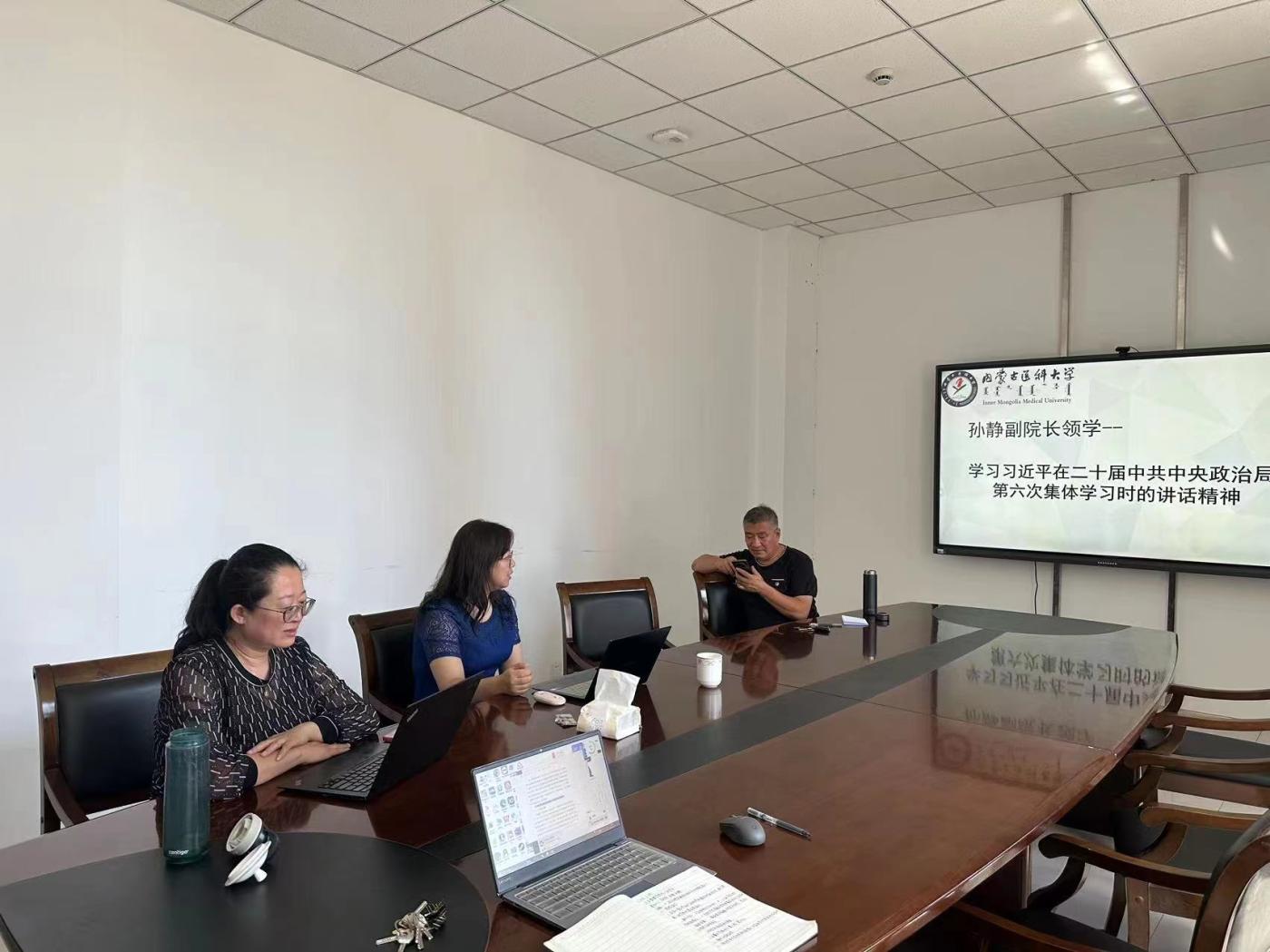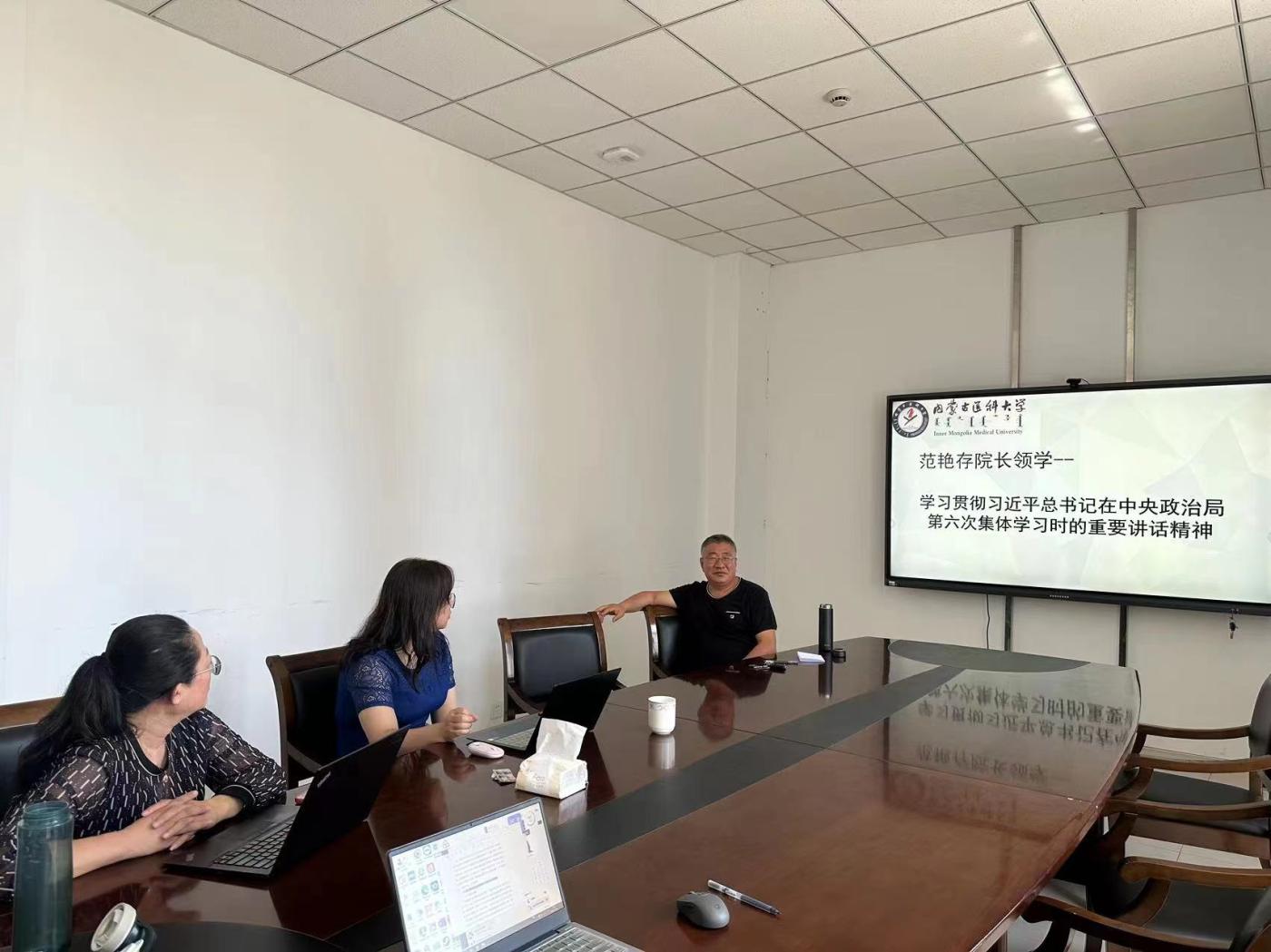 7月24日,卫生管理学院党总支理论学习中心组围绕“学习贯彻习近平总书记关于党的建设和组织工作的重要指示精神”“学习贯彻习近平总书记在中央政治局第六次集体学习时的重要讲话精神”“学习贯彻自治区党委十一届六次全会精神”三个主题分别由卫生管理学院院长范艳存、卫生管理学院党总支副书记、副院长张楠、卫生管理学院副院长孙静进行领学,并开展研讨。