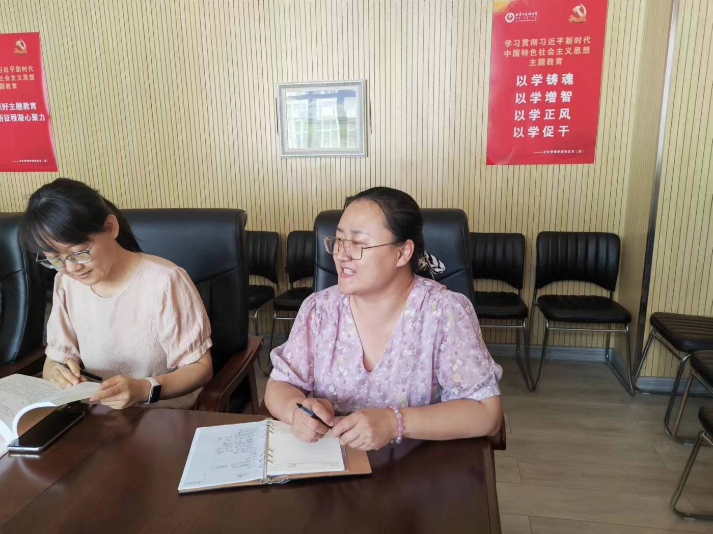 为深入学习贯彻习近平新时代中国特色社会主义思想主题教育走深走实,进一步巩固深化学习成果,丰富党日活动形式,卫生管理学院党总支开展“学习贯彻习近平新时代中国特色社会主义思想主题教育”读书分享会主题党日活动。学院党内高层人人才代表杨慧兰、党支部书记代表李敏、青年教师代表赵佳乐3位教师分别就《习近平总书记对内蒙古重要指示》《习近平关于调查研究论述摘编》《习近平著作选读》第一卷三本书发表了感想和体会,倾吐心声、抒发感情。