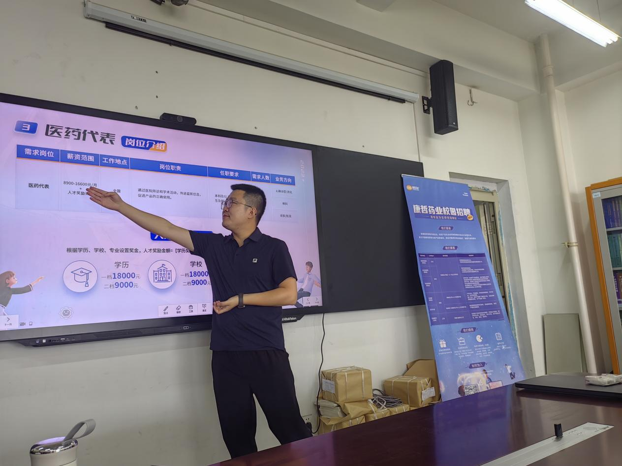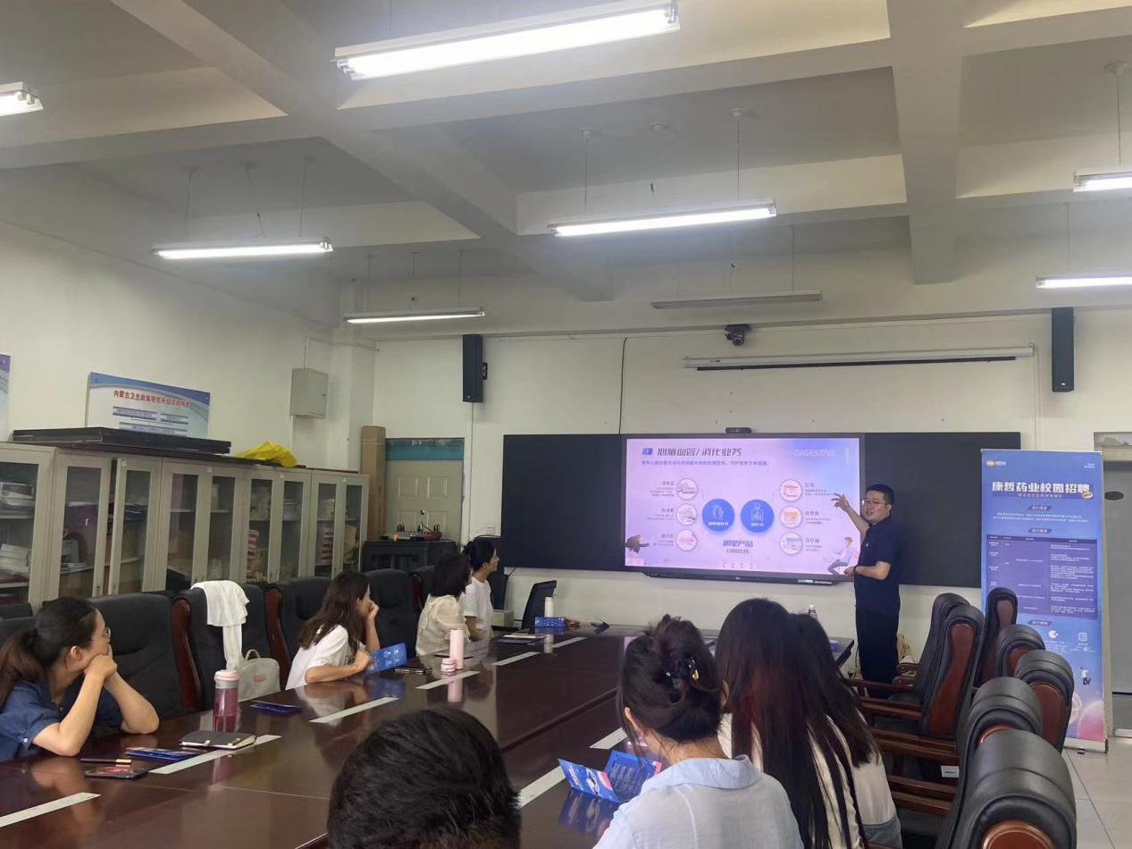 为深入学习贯彻习近平新时代中国特色社会主义思想主题教育,推进学生就业实习工作,加强产学研深度融合,推动校企合作与人才培养,医药营销党支部于 7 月 4 日开展“强党建,促就业”主题党日活动,邀请康哲药业集团内蒙区域人事总监刘雨萌就学生就业及实习工作进行交流洽谈,刘雨萌总监就康哲药业集团的发展现状,潜力及岗位需求做了详细介绍。双方就未来可能开展的合作进行了沟通交流。