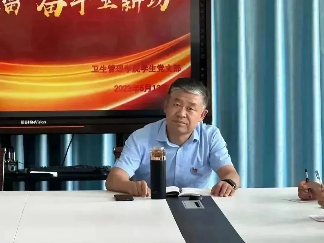 为深入学习贯彻习近平新时代中国特色社会主义思想主题教育,用习近平新时代中国特色社会主义思想指导工作、提升成效、充实大脑,引导毕业生党员在新的起点、新的征程上创优争先,为社会主义现代化伟大事业添砖加瓦、贡献力量。卫生管理学院学生党支部于2023年6月13日开展学习贯彻习近平新时代中国特色社会主义思想主题教育暨2019级毕业生党员集中学习活动。学院党总支书记任孝东,党总支副书记、副院长张楠,辅导员谢宇新、高敏、籍雅元以及2019级全体正式党员参加学习。